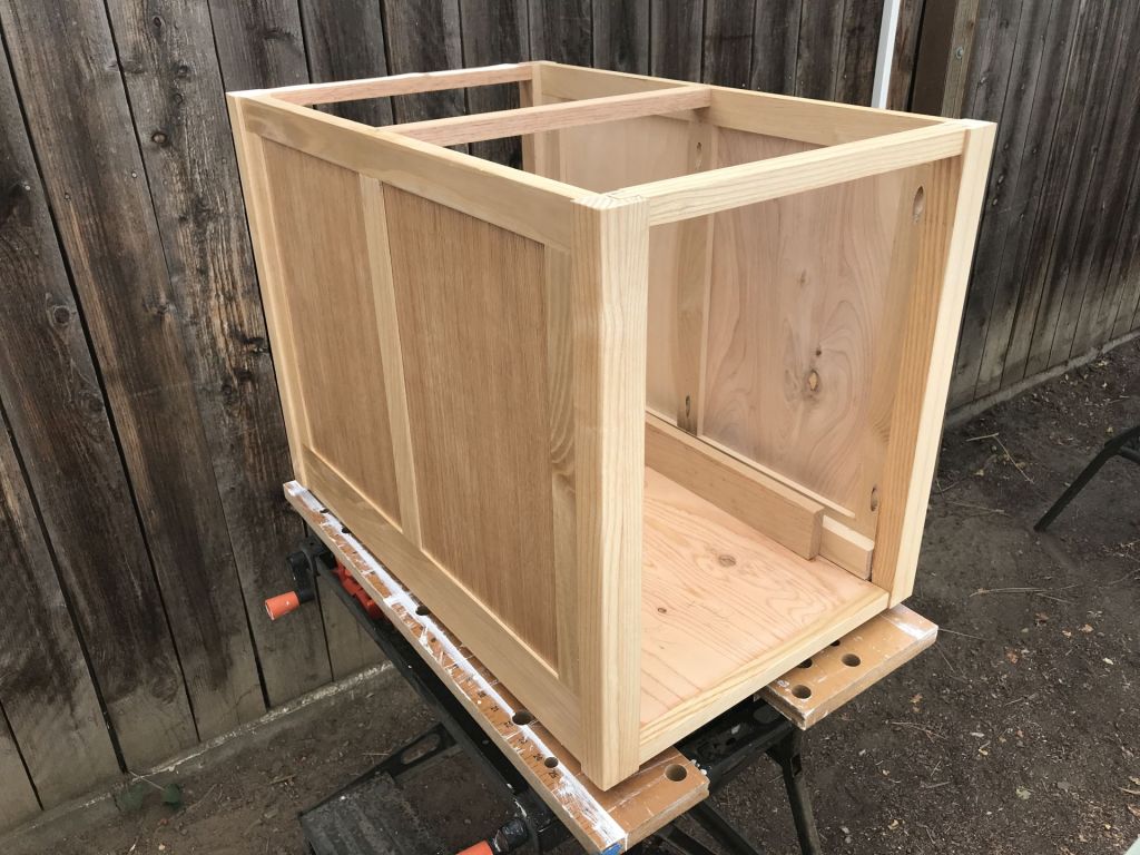 I like to use the wood I have on hand for projects if I can and I had a sufficient quantity of white oak, so that’s what I chose. For the side panels, which are 1/4″ plywood, I bought some white oak veneer. I had not used veneer before so that was new.