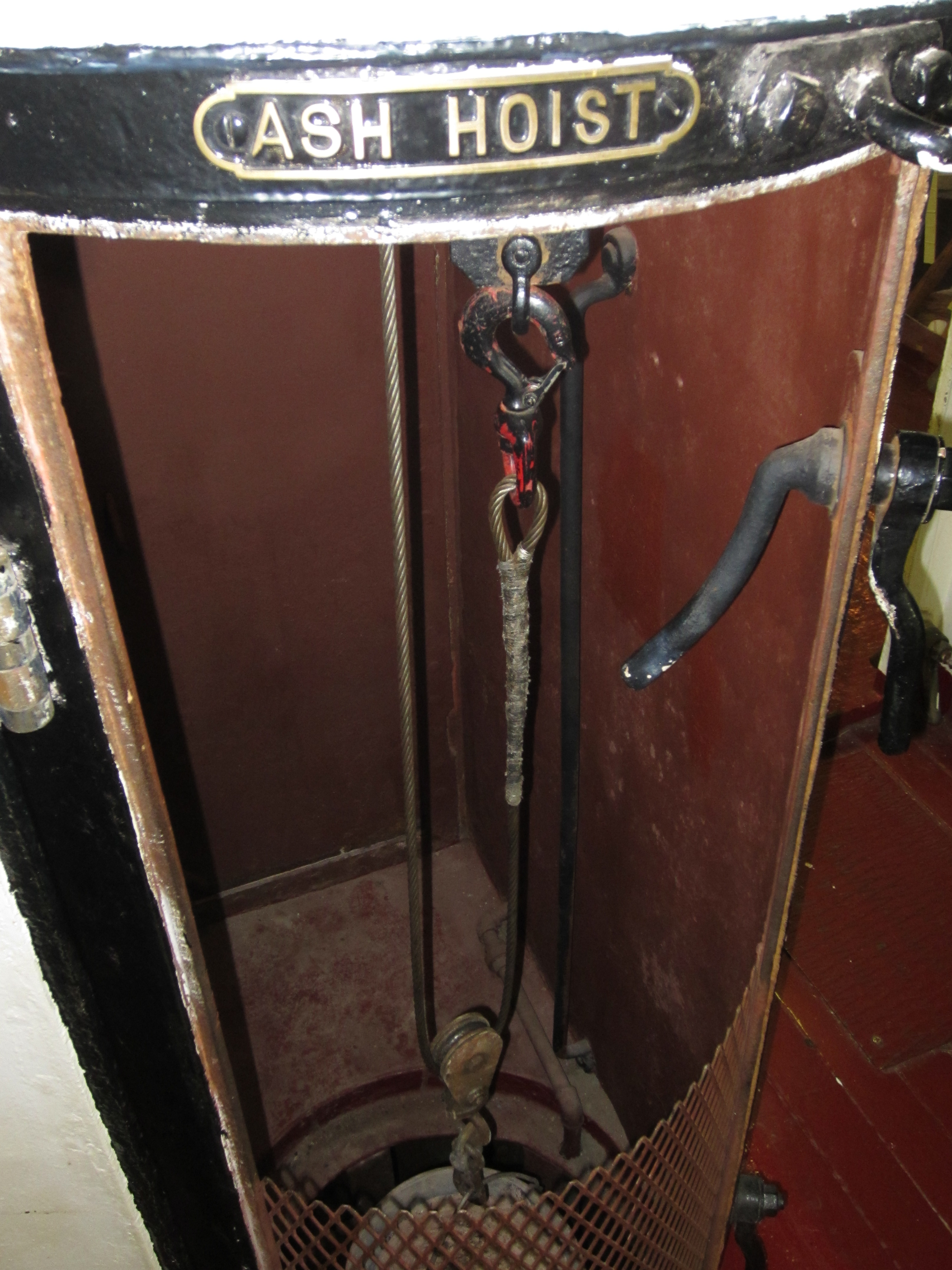 The guide told me two interesting things – one I already knew but had forgotten and one I didn’t. Right next to the boiler feed area – where the ‘snipes’ work to fire the boilers according to how fast the captain or OOD wants to go (communicated via engine order telegraph from the bridge or conn and is called ‘answering bells’) , are a couple of periscopes. These scopes run all the way up to the top of the ship’s exhaust stacks and are used to gauge the proper mixture of air and oil in the furnaces. If the mix is off, the ship will be blowing black or white smoke, depending. That’s not good for boiler efficiency and it’s not good for stealth (yes, even battleships pay attention to stealth). You can see a plume of black smoke a long way off. So the snipes use the periscopes to adjust the mix to optimum. Cool.