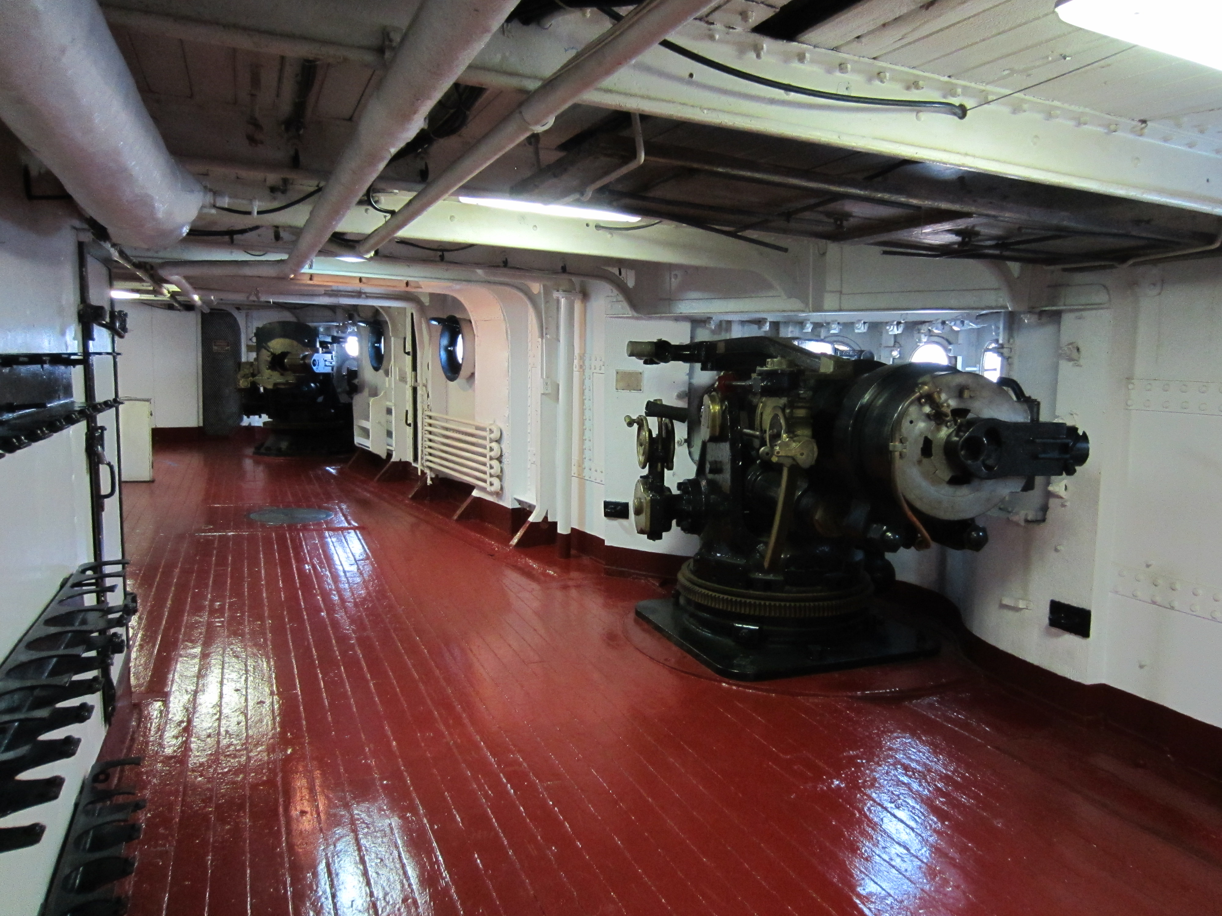 While the engine room was not open to visitors when I toured Olympia, the rest of the ship is quite impressive and in great shape. If you visit, you’ll see ornate fittings, lots of wood and some really spectacular 5″ guns on full display on the gun deck. The 8″ gun turrets unfortunately were also closed off.