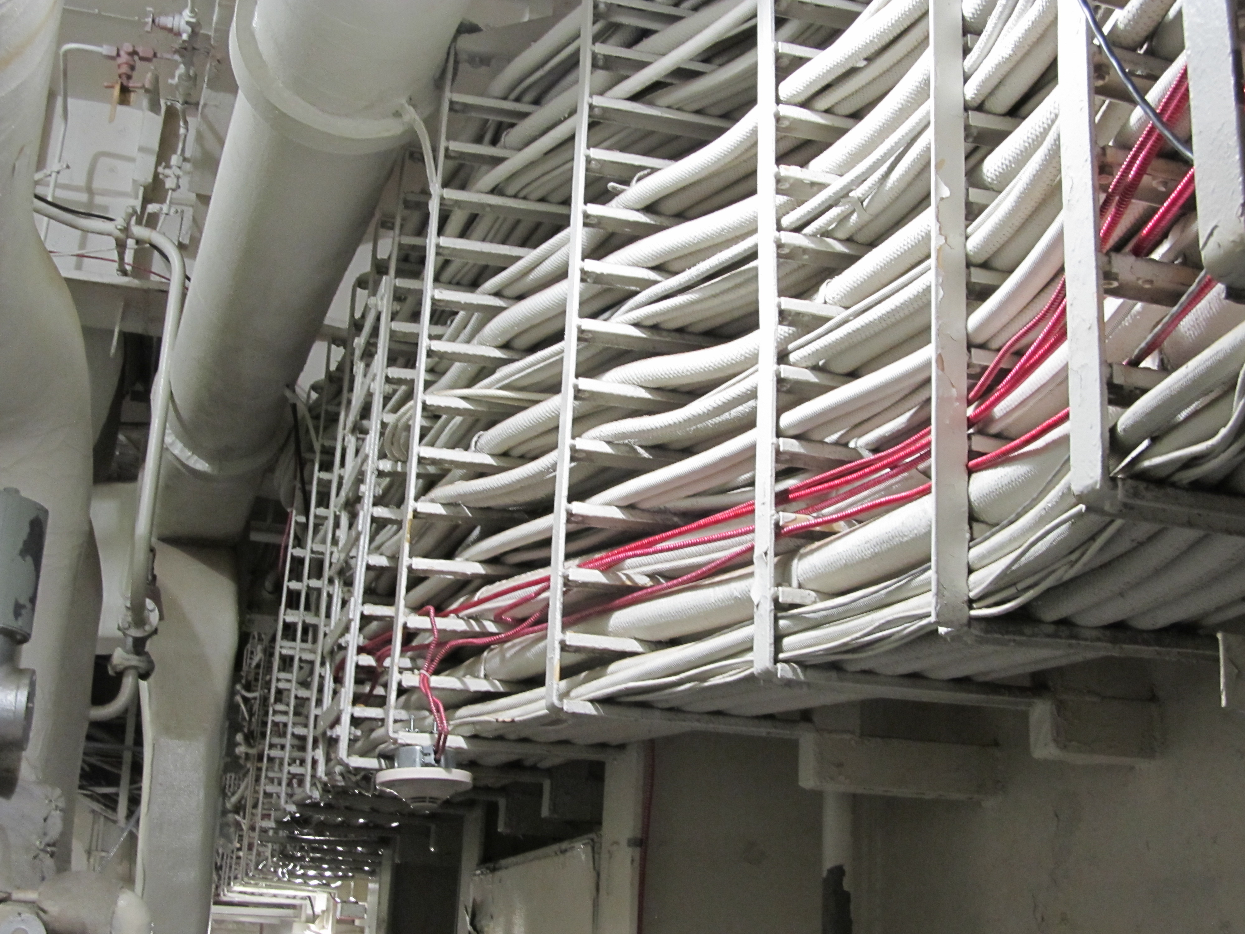 But if you do enter a WWII-era engine room, you’ll find yourself immersed in a steel jungle filled with heavy duty machinery, pipes, valves, cables (wires), gauges, switches and other things less easily categorized. Drain tanks, steam turbines wrapped in insulation, reduction gears, sightglasses. Trying to figure out how it all comes together to form a propulsion train capable of moving a massive ship is a challenge even for the initiated.
